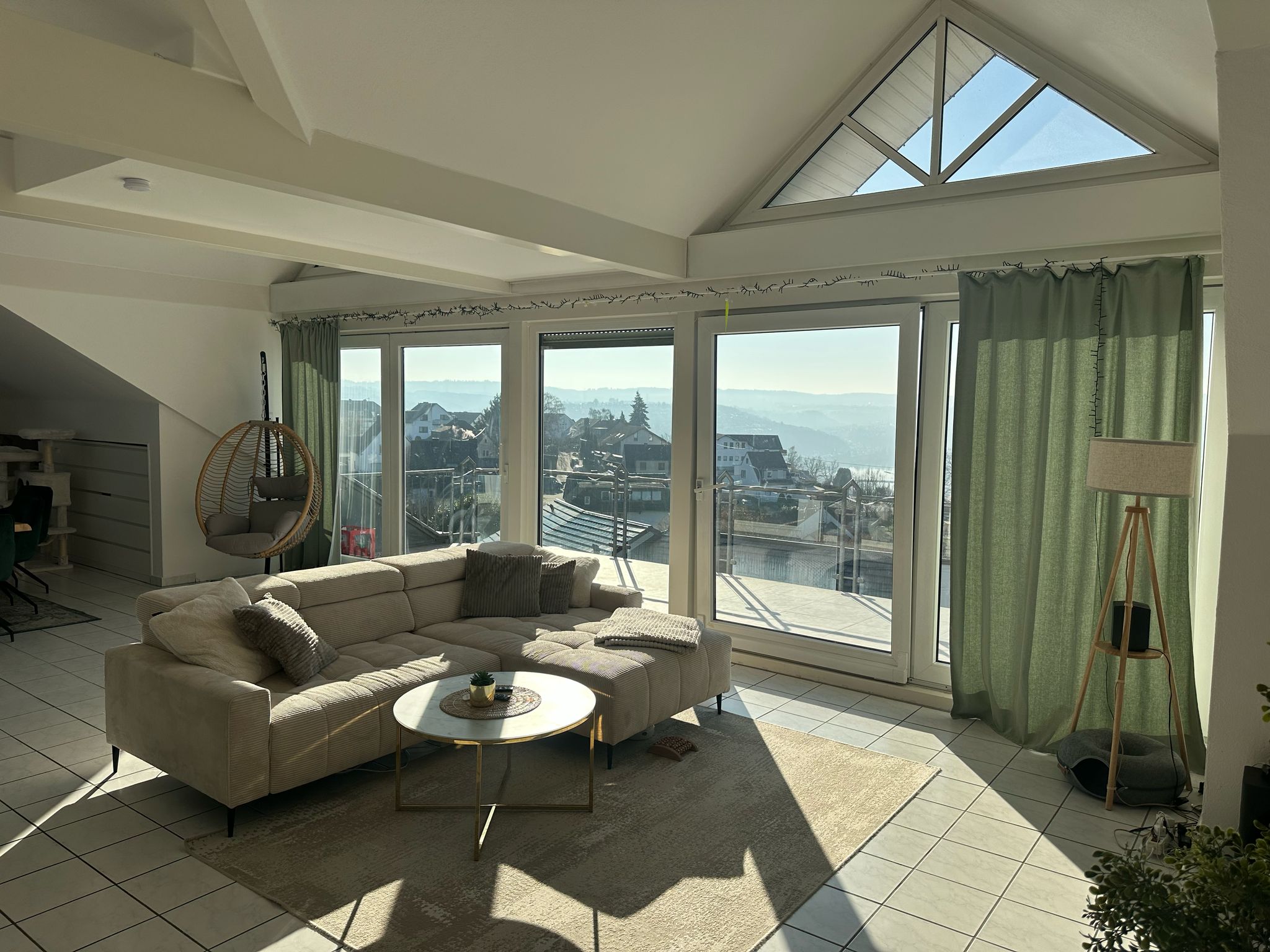 - 3ZKB Penthouse Wohnung mit Rhein-Panoramablick mit Sonnenterrasse, offenem Wohnraum mit hochwertiger Küche. Fußbodenheizung, bodentiefe Fenster. Helle lichtdurchflutete Zimmer, Abstellplatz, Kellerraum uvm.