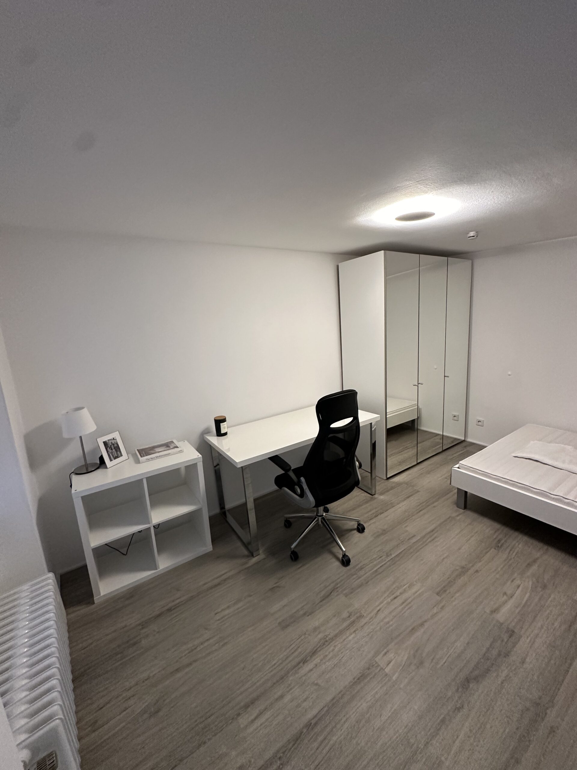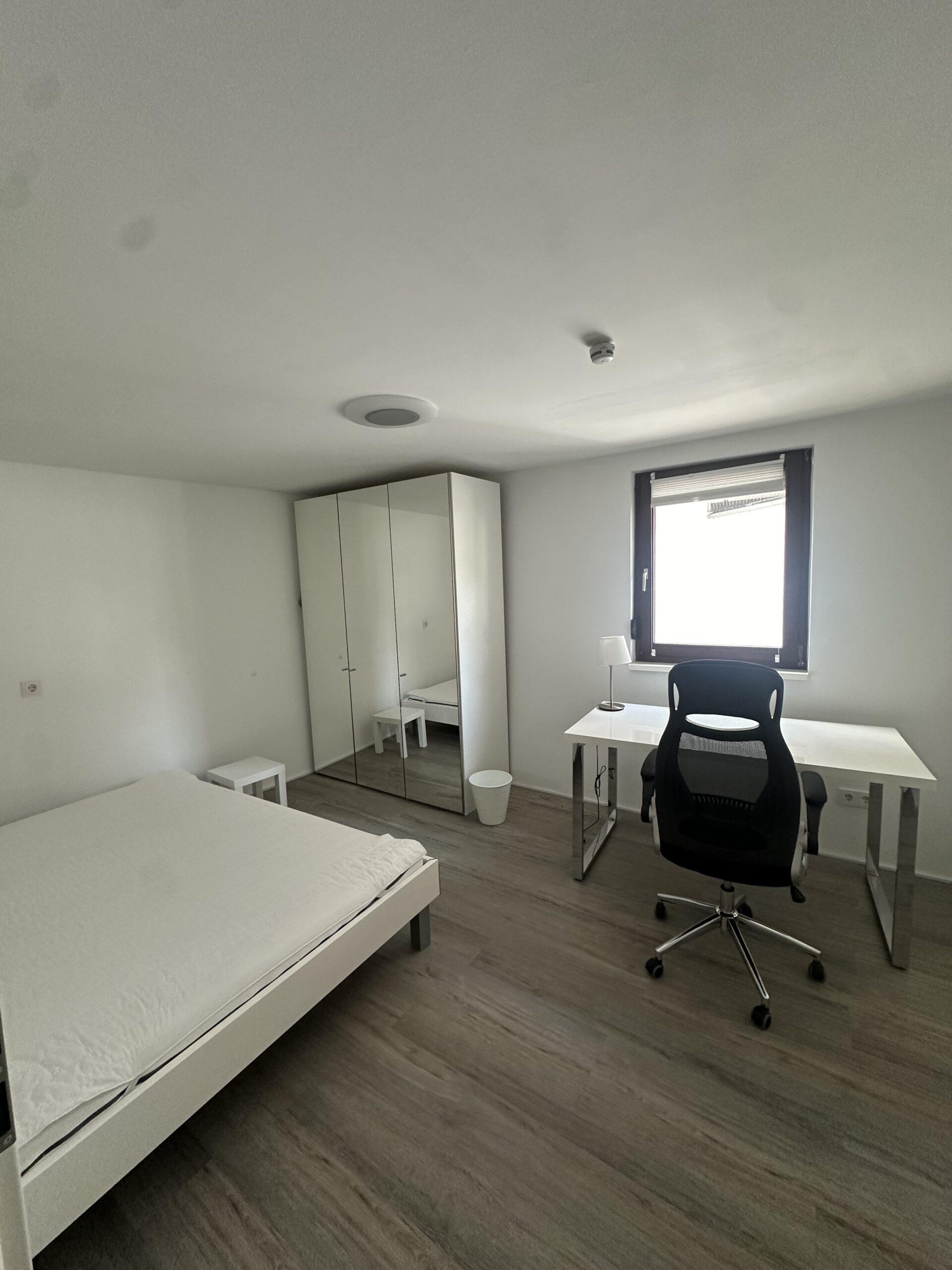 - * Zwei Zimmer, jeweils ausgestattet mit Bett, Kleiderschrank und Schreibtisch